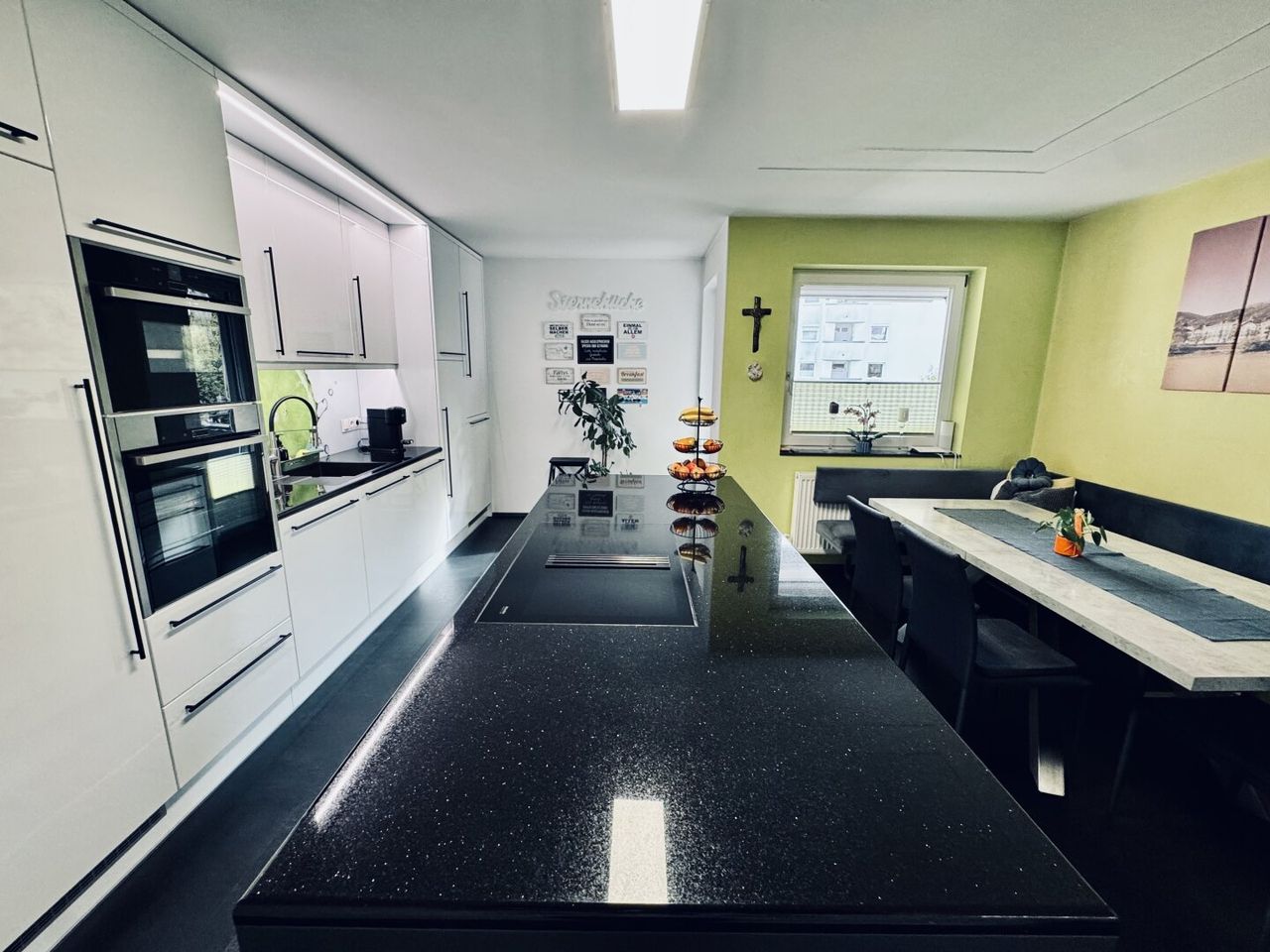 Separate, voll ausgestattete Küche: Die hochwertige, vom Tischler gefertigte Einbauküche (im Kaufpreis inkludiert) bietet einen charmanten Essbereich und Zugang zu einem weiteren sonnigen Balkon