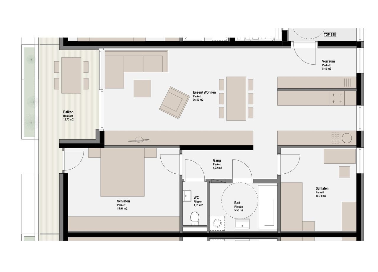 Diese 3-Zimmer-Wohnung erreichen Sie über einen geräumigen Personenaufzug.