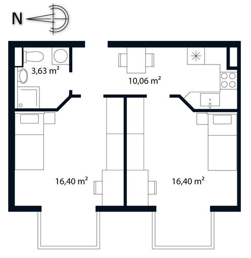 Die Wohnung verfügt über zwei separat begehbare Zimmer, wodurch sie sich ideal für eine 2er-Wohngemeinschaft eignet.