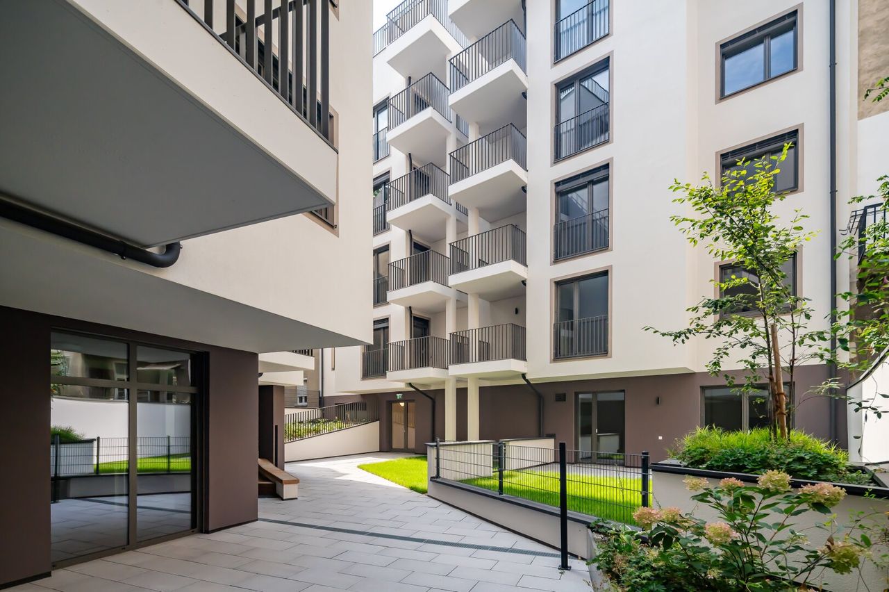 Jede Wohnung ist nicht nur mit einer Freifläche ausgestattet, sondern weißt auch hochwertige Materialien als auch Ausstattung aus: