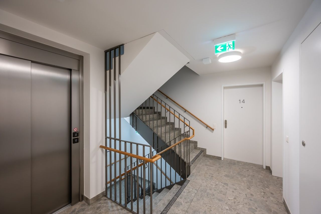 Das Haus selbst verfügt über Fahrradabstellmöglichkeiten, großzügige Fahrradsteher im Freien, Jugendspielraum und Kleinkinderspielplatz sowie Postboxen. Darüber hinaus stehen in der hauseigenen Tiefgarage PKW als auch Motorradstellplätze zur Verfügung, 4 PKW Stellplätze mit E-Ladestation (alle Stellplätze gegen Aufpreis). Klimaanlagen sind in den Dachgeschosswohnungen eingebaut.