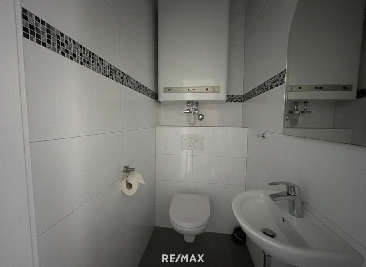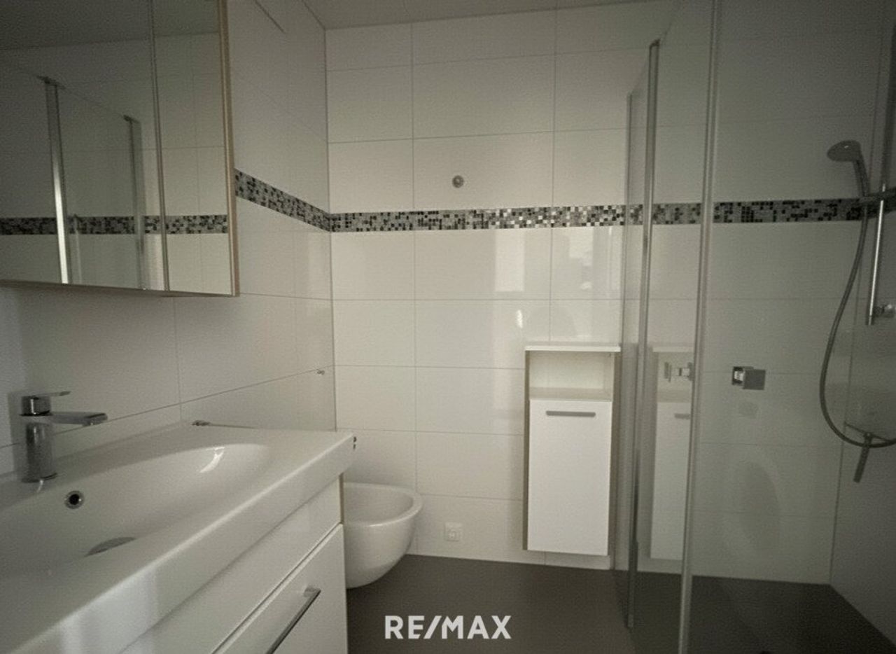 Der großzügig geschnittene Koch-/Wohn-/Essbereich mit südlicher Ausrichtung bietet ein angenehmes Wohnambiente. Die neuwertige Hochglanzküche fügt sich harmonisch in diesen Raum ein. Die Wohnung verfügt über ein geräumiges Schlafzimmer. Ein separater Abstellraum schafft zusätzliche Staufläche. Das moderne, lichtdurchflutete Badezimmer ist mit einer Dusche, einem Bidet sowie einem Waschmaschinenanschluss ausgestattet. Ein separates WC ist ebenfalls vorhanden.