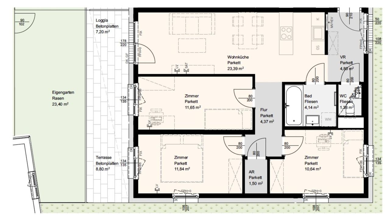 Weitere Wohnungen in der Anlage frei zwischen 39m2 und 82m2 ( Gartenwohnungen, 1.bis 3. Stock) wählbar, mit Freiflächen und zusätzlicher Anmietung eines Stellplatzes.