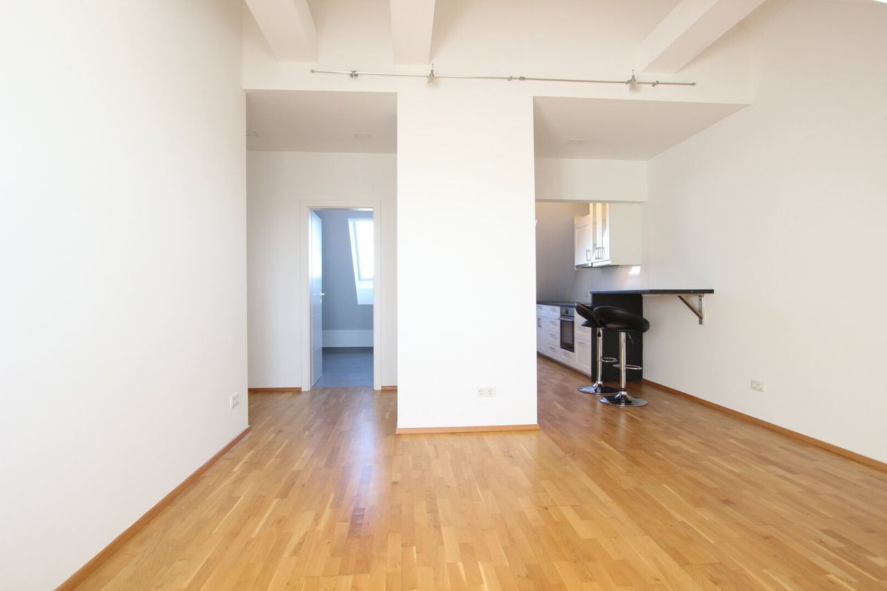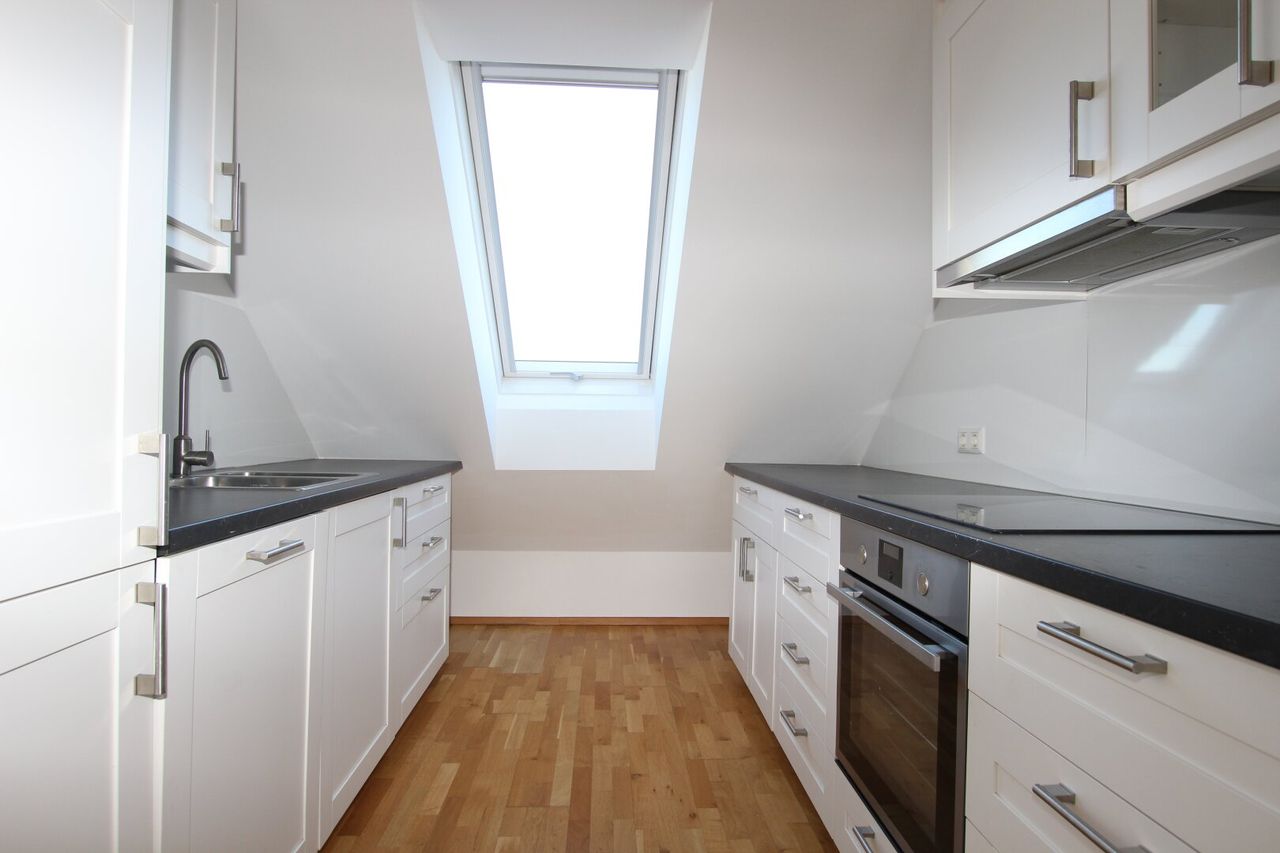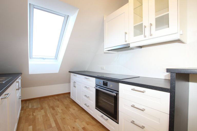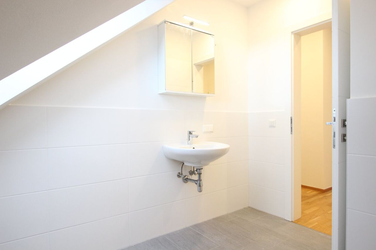 Diese moderne, im 2. Stock gelegene Garconniere bietet alle Annehmlichkeiten einer gemütlichen Dachgeschosswohnung, Baujahr 2017 (Ausbau des Dachbodens).