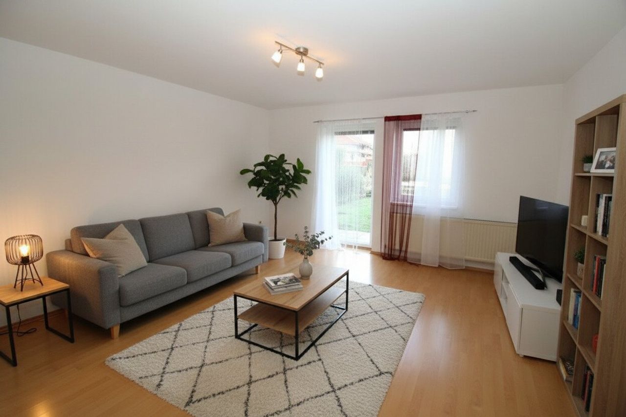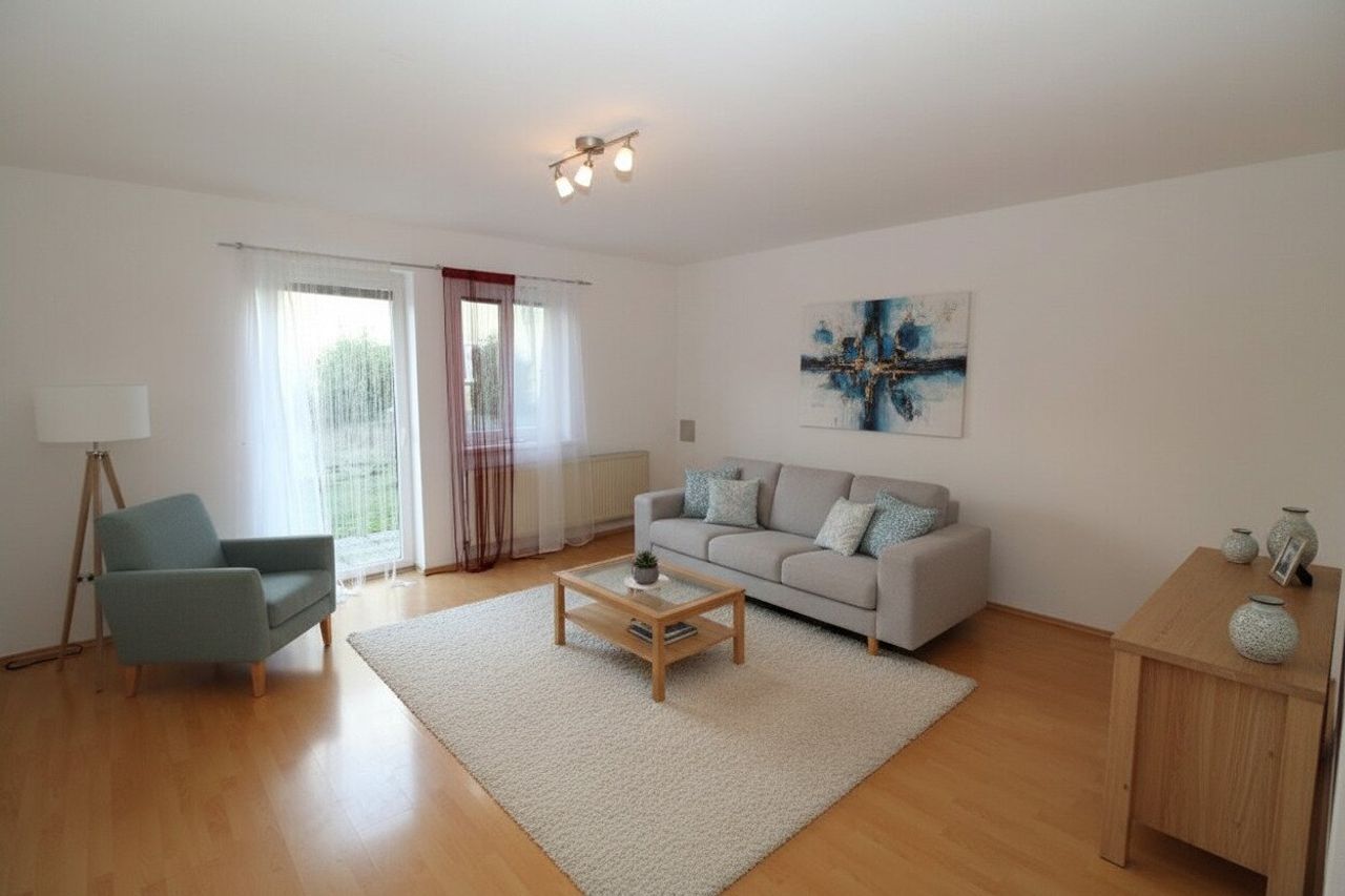 „Die dargestellten Möbel und Einrichtungsgegenstände dienen der besseren räumlichen Vorstellung und wurden mittels KI visualisiert. Sie sind nicht Bestandteil der tatsächlichen Ausstattung der Immobilie.“