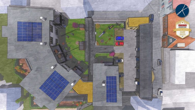 Die Wohnungsgrößen belaufen sich von ca. 42m² bis 98m² (2-4 Zimmer), jede Wohnung verfügt über einen Außenbereich (Garten, Balkon oder Terrasse). Auf dem Grundstück werden überdies ein Kinderspielplatz sowie 19 KFZ-Stellplätze (teilweise überdacht) für die Bewohner zur Verfügung stehen.