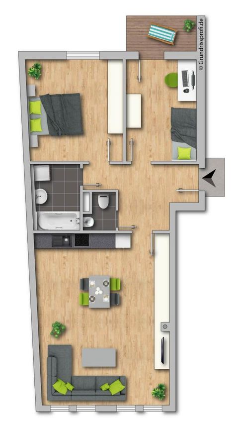 Diese Wohnung eignet sich ideal für Singles, Paare oder kleine Familien, die eine gepflegte Wohnung mit Terrasse in angenehmer Lage suchen.