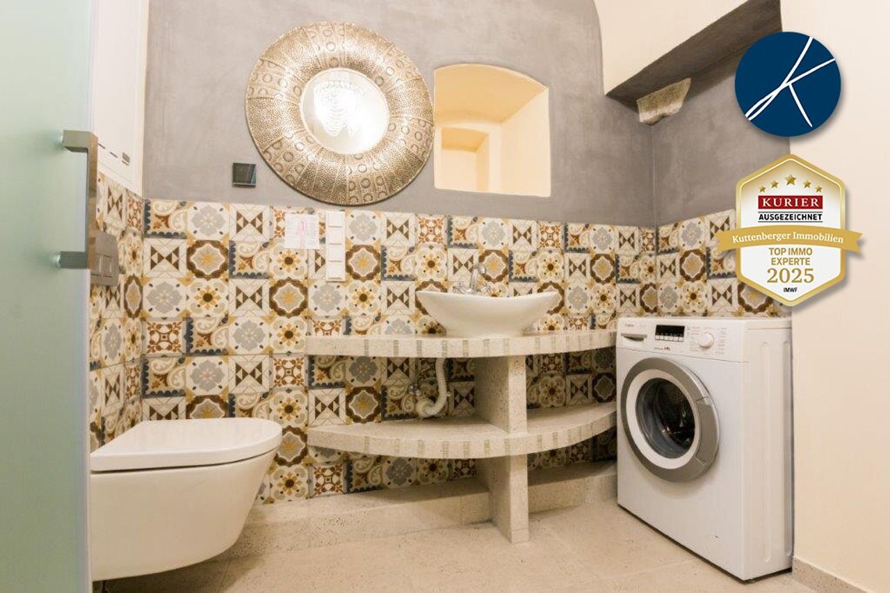 Das Appartement befindet sich in einem sanierten, historischen Stadthaus in der wunderschönen Altstadt von Krems-Stein und wird möbliert vermietet. Die Liegenschaft wurde mit viel Liebe zum Detail, unter Einhaltung des Denkmalschutzes, saniert und bietet einen wunderbaren Mix aus modernen Elementen und den alten, historischen Strukturen. Die ca. 33 m² Wohnung teilt sich in ein Wohn-Schlafzimmer mit komplett ausgestatteter Küche, ein Badezimmer mit Dusche, sowie einen Vorraum. Beheizt wird das Objekt durch eine Zentralheizung (Gas), im Badezimmer über eine Fußbodenheizung. Die Miete beträgt € 799,14 brutto pro Monat inkl. Betriebskosten, Heizung (aconto), Möbelmiete,...