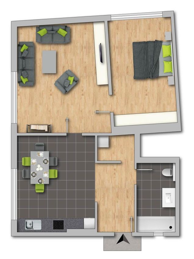 Die Wohnräume sind mit modernen Böden ausgestattet