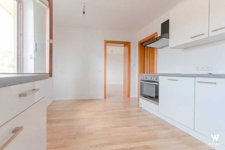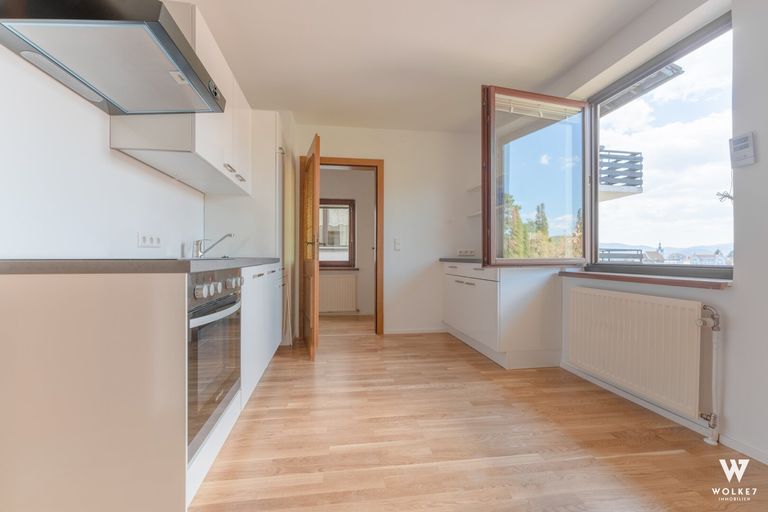 Hochwertige Parkettböden, die westseitige Ausrichtung sowie die großzügigen Fensterflächen sorgen für ein angenehmes Wohngefühl und viel Tageslicht.
