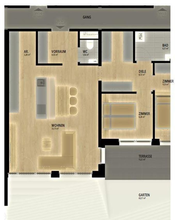 Die 24 Wohneinheiten variieren von 40,63m² bis 79,95m² und entsprechen somit allen individuellen Wohnungsanforderungen.