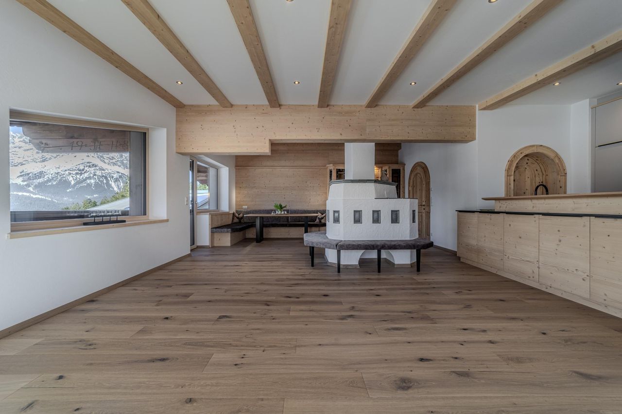 Provisionsfrei! Wir dürfen Ihnen hier eine traumhafte, teilmöblierte Penthousewohnung/Ski in/Ski out im edlen alpinen Stil mit unverbaubarem Kaiserblick direkt neben der Skipiste zur Miete anbieten. Diese Penthousewohnung mit imposantem Blick auf den hoheitsvollen Wilden Kaiser befindet sich in einem sehr gepflegten Mehrfamilienhaus und verfügt über eine Wohnfläche von ca. 120 m². Die Wohnung wurde 2025/2026 komplett erneuert, exklusiv ausgestattet und entspricht dem heutigen Neubaustandard. Diese hier angebotene Residenz für höchste Ansprüche liegt in einer der schönsten Lagen von Ellmau auf dem sogenannten "Kirchbichl" und thront quasi über Ellmau und sucht Mieter, welche gerne etwas schicker, stilvoller, ruhiger und mit freiem...
