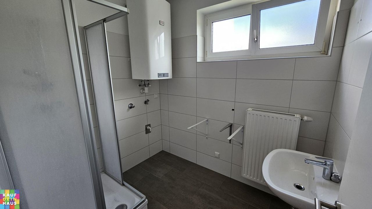 - Badezimmer mit Dusche und Waschmaschinenanschluss
