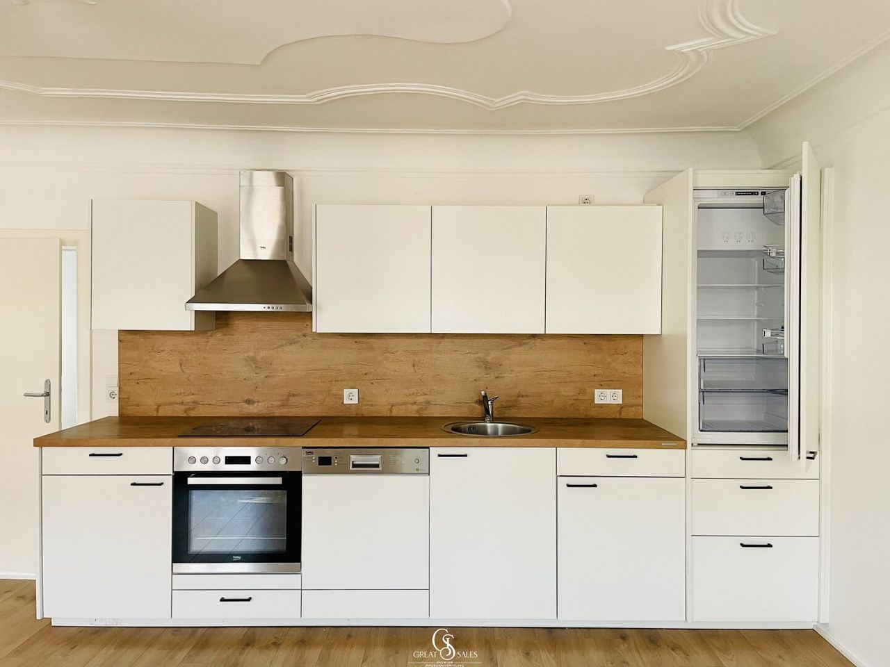 - Große Wohnküche: Das Herzstück der Wohnung! Die großzügige Wohnküche ist ein Ort für kulinarische Kreationen und geselliges Beisammensein. Die moderne Marken-Küche mit zeitgemäßen Elektrogeräten bietet alles, was Hobbyköche und Genießer benötigen.