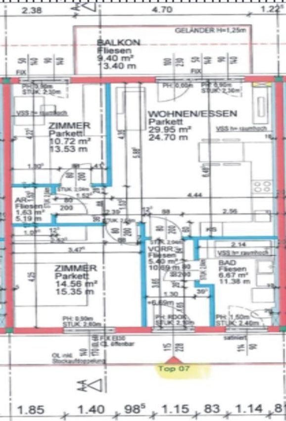 Raumaufteilung: Vorraum, Bad / WC, Abstellraum, Wohnküche mit Zugang zum Balkon, Schlafzimmer und Kinderzimmer zu dieser Wohnung gehören 2 Pkw in der Miete inkludiert.