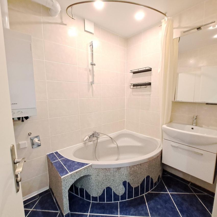 Natürlich gibt es auch ein Badezimmer mit Wanne, Waschbecken und Waschmaschinen-Anschluss.