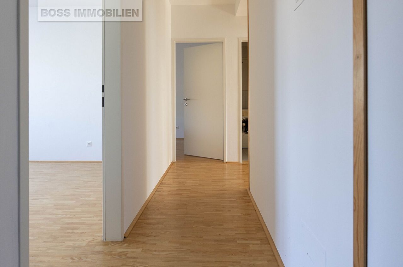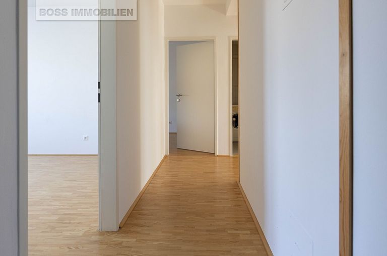 Schon beim Eintreten empfängt Sie ein großzügiges Vorzimmer mit raumhohen Schränken, die viel Stauraum bieten. Ein zusätzlicher Schrankraum sorgt für perfekte Ordnung bei Mänteln, Jacken und allem, was Sie griffbereit haben möchten.