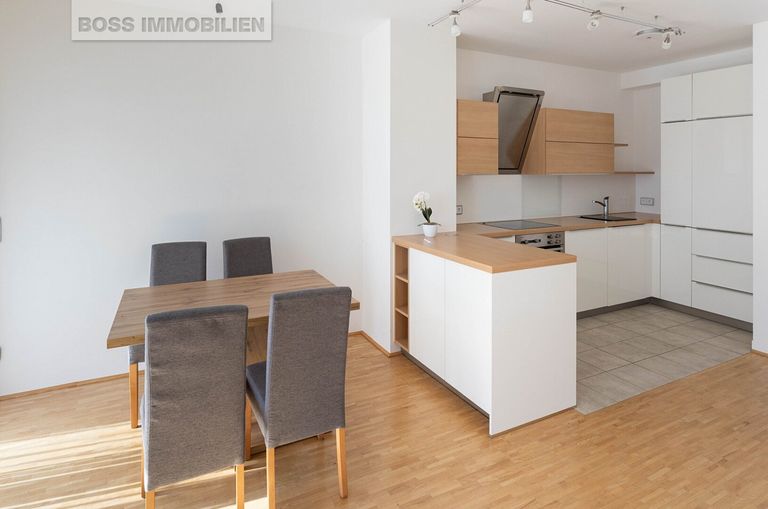 Der offen gestaltete Wohnbereich mit integrierter Küche bildet das Herzstück der Wohnung – ein Ort zum Ankommen, Kochen und Zusammensein. Von hier aus gelangen Sie direkt auf die ostseitig ausgerichtete Loggia, wo Sie den Tag entspannt mit Blick auf den Sonnenaufgang beginnen können.