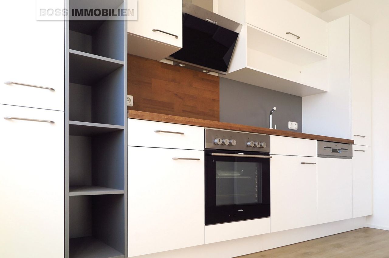 Die zeitlose Einbauküche bietet ausreichend Platz für gemütliche Kochabende mit Freuden und kann gegen Ablöse übernommen werden.