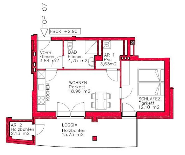 Ein Highlight dieser Wohnung ist die Loggia, die Ihnen einen wunderbaren Platz im Freien bietet. Hier können Sie die frische Luft genießen, entspannen oder einfach den Blick ins Grüne schweifen lassen.
