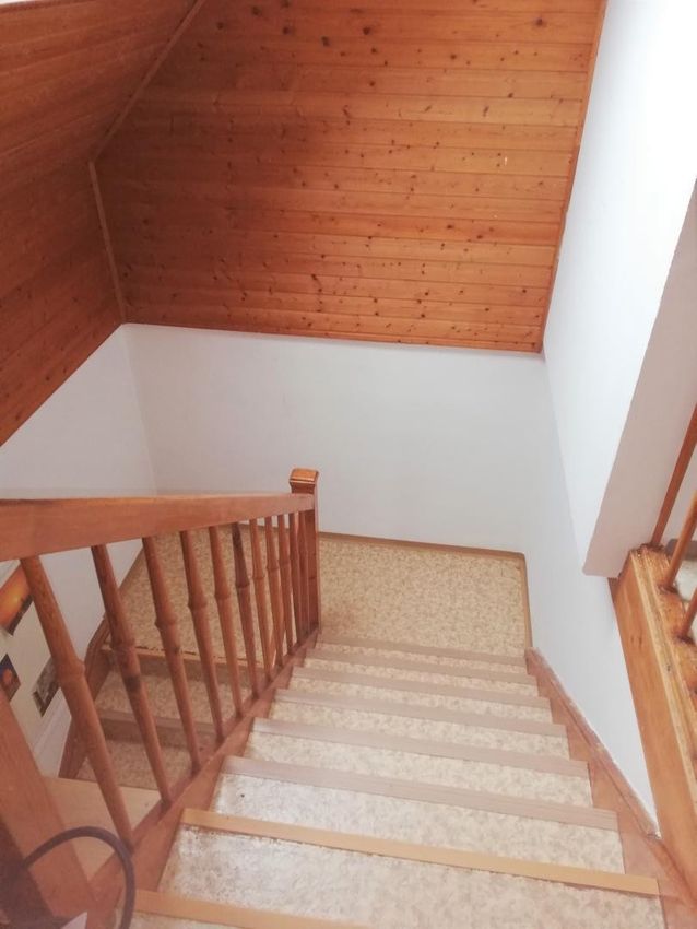 Über einen eigenen Zugang gelangen Sie ins Obergeschoß, wo sich ein gemütliches Wohnzimmer, ein Schlafzimmer mit Einbaukasten und kleinem Abstellraum, eine kleine Küche sowie ein kompaktes Badezimmer mit Dusche und WC befinden.