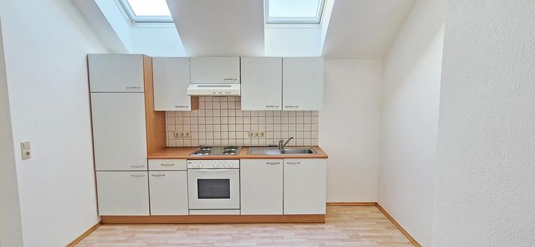 Durch die Dachflächenfenster im Wohnraum und im Badezimmer ist die Wohnung angenehm hell und freundlich.
