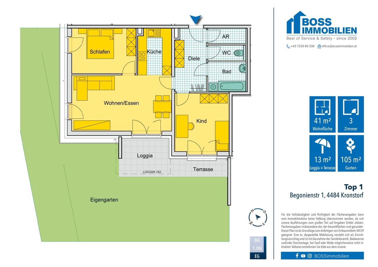 Besonders reizvoll ist der direkte Zugang ins Freie: Ob entspannter Nachmittagskaffee auf der sonnigen Loggia oder ein Glas Wein im eigenen Garten – hier spielt sich das Leben draußen genauso schön ab wie drinnen. Der Garten wartet darauf, zur persönlichen Wohlfühloase zu werden: Hochbeet, Kräuterspirale, Blütenmeer oder gemütliche Lounge – Ihrer Fantasie sind kaum Grenzen gesetzt.