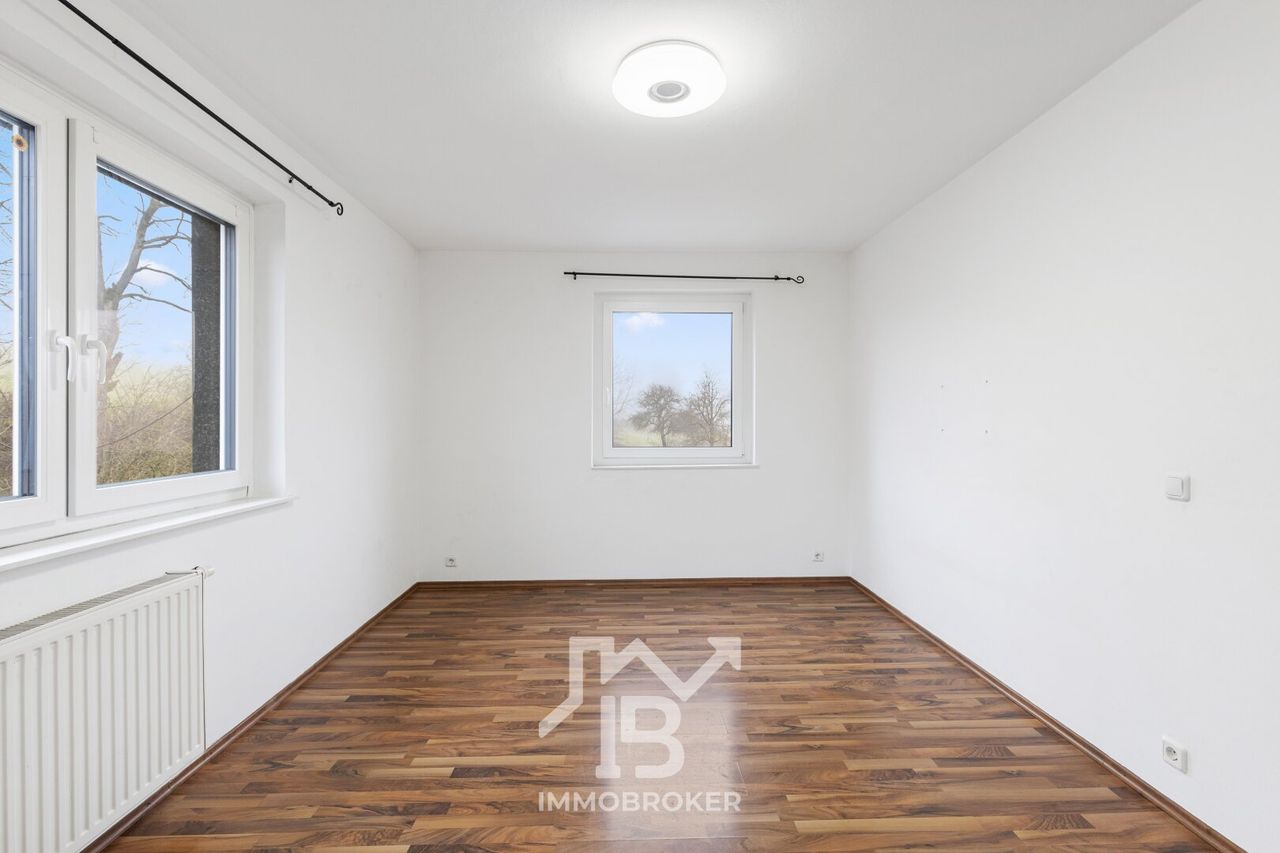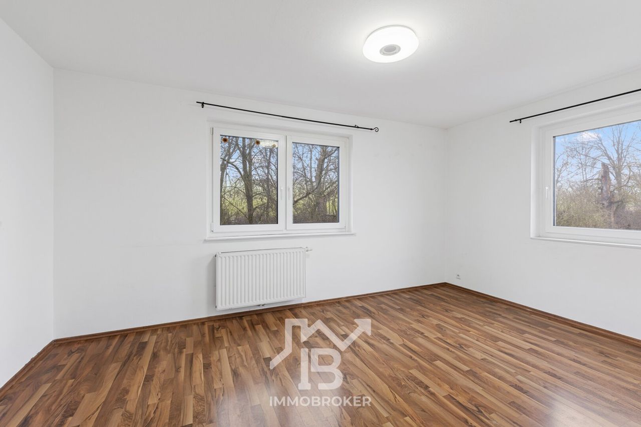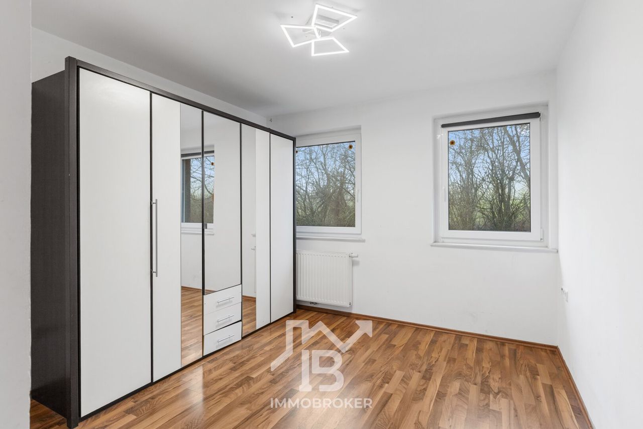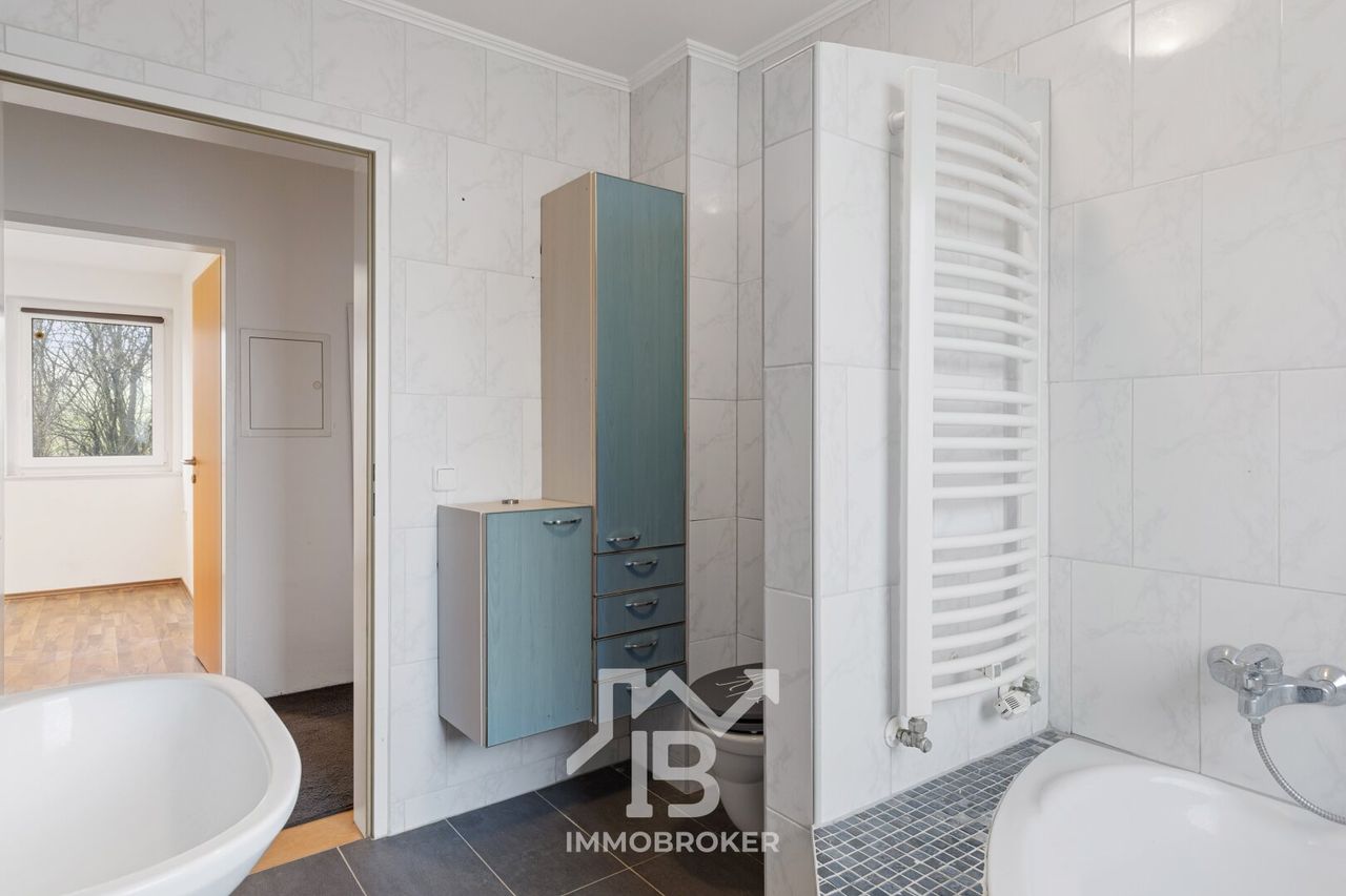 Das Badezimmer, ausgestattet mit einem Fenster und einer komfortablen Badewanne, wird zum persönlichen Rückzugsort, in dem Sie nach einem langen Tag entspannen können. Genießen Sie den herrlichen Grünblick, der Ihnen in den meisten Räumen dieser Wohnung geboten wird. Hier können Sie die Ruhe der Natur genießen und den Alltagsstress hinter sich lassen.