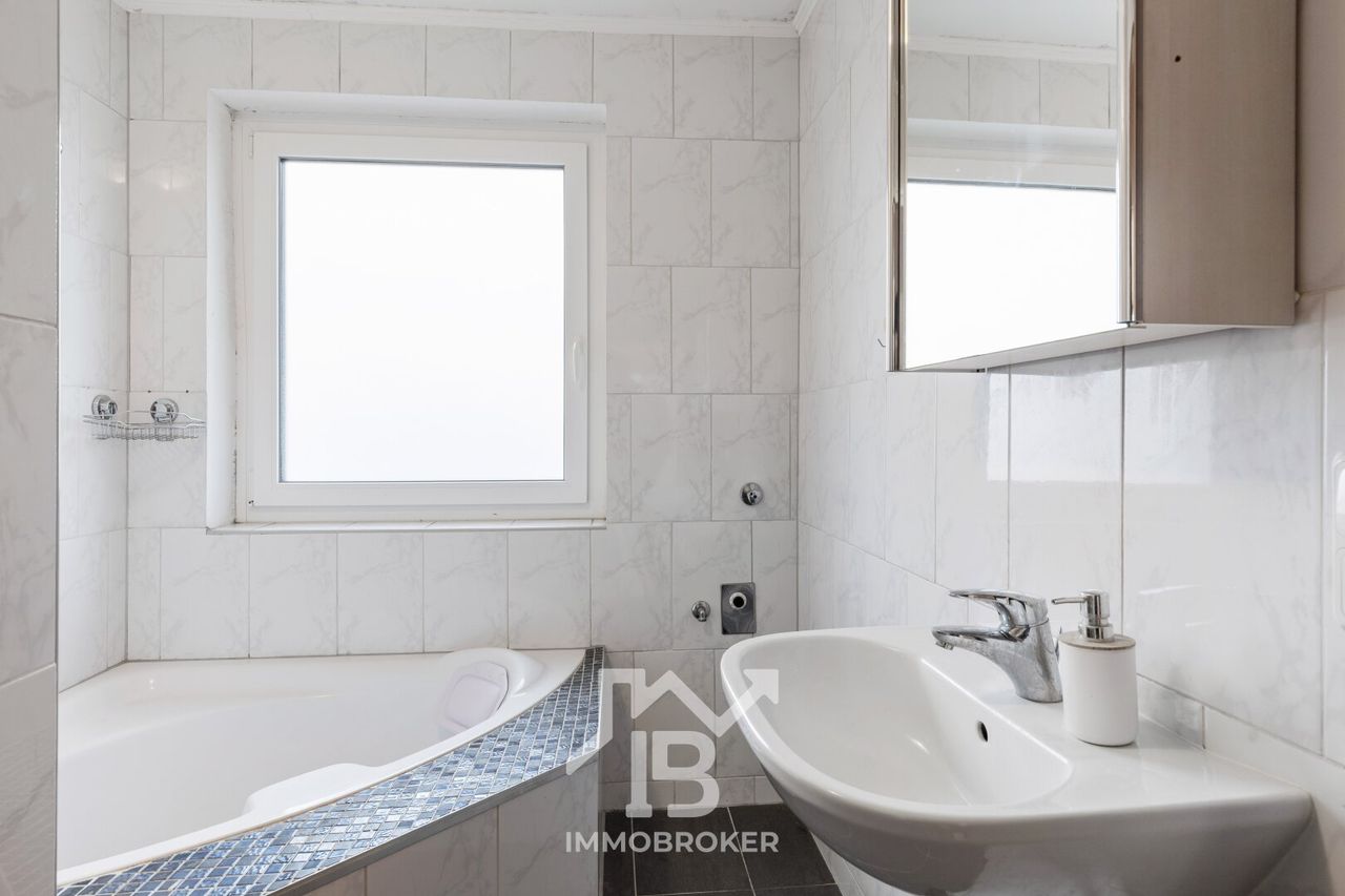 Das Badezimmer, ausgestattet mit einem Fenster und einer komfortablen Badewanne, wird zum persönlichen Rückzugsort, in dem Sie nach einem langen Tag entspannen können. Genießen Sie den...