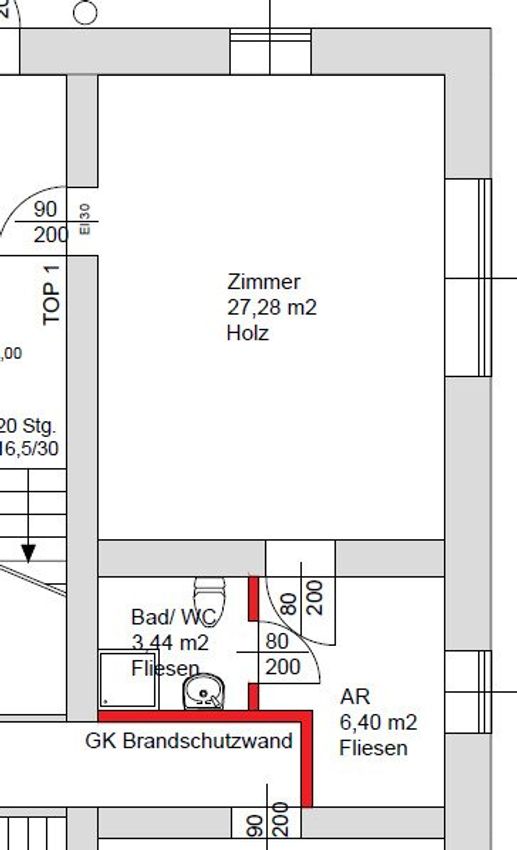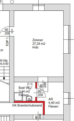 Raumaufteilung Zimmer - Küche - Bad mit WC