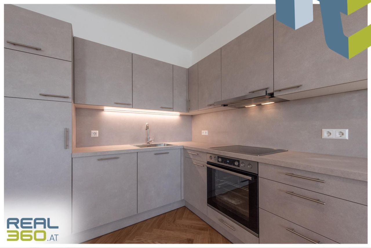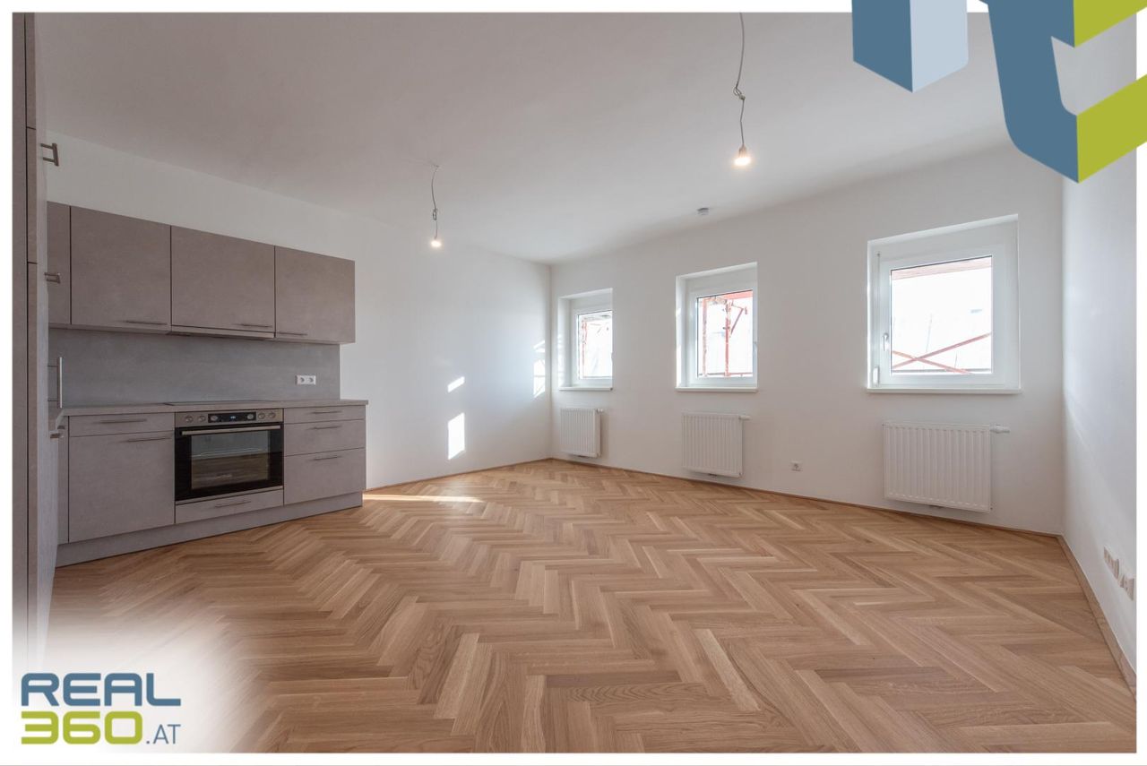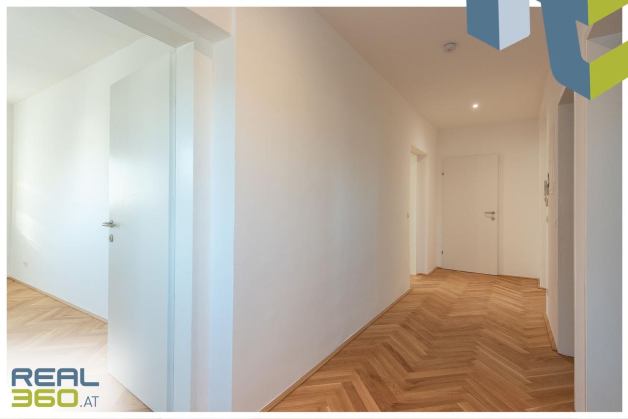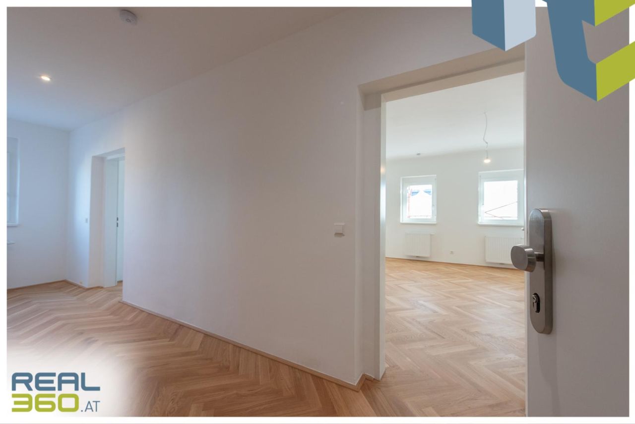 In zentraler Lage von Linz befindet sich diese hochwertig generalsanierte 2-Zimmer-Wohnung im 6. Obergeschoss eines gepflegten Wohnhauses. Auf rund 71,23 m² Wohnfläche überzeugt sie durch einen durchdachten Grundriss und modernen Wohnkomfort. Die Wohnung wird ab Jänner 26 zur Erstvermietung nach Generalsanierung angeboten und befindet sich kurz vor der Fertigstellung. Die Ausführung ist hochwertig geplant: Echtholzparkett im Fischgrätmuster verlegt, großformatiges Feinsteinzeug in Sandsteinoptik in den Nassbereichen, sowie eine Küche in der Erstausstattung sorgen für eine solide Grundausstattung in eleganter Ausführung.