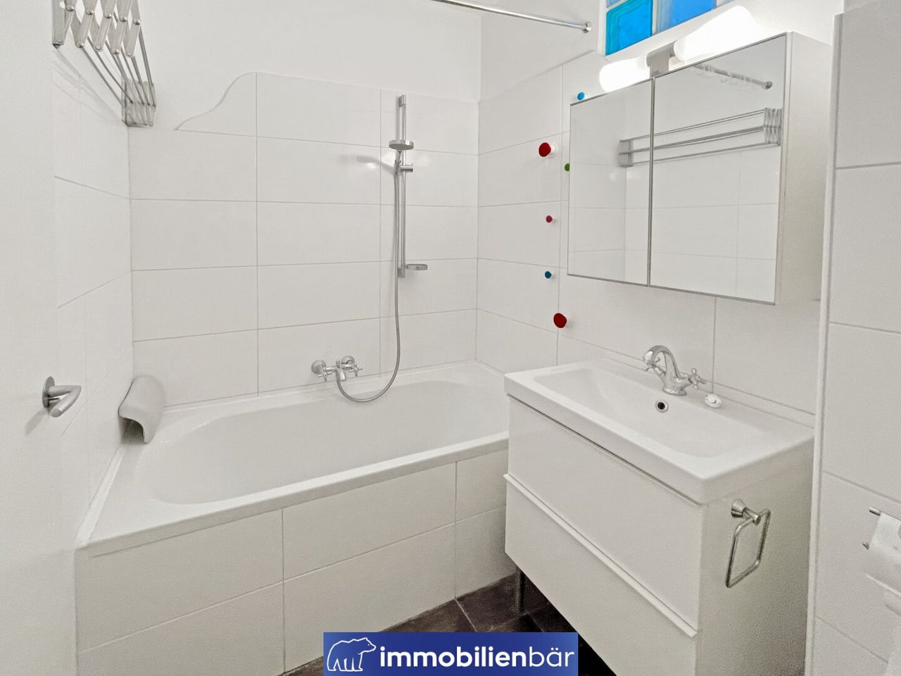 Die Küche ist mit den Geräten gut ausgestattet und bietet ausreichend Platz zum Kochen und Verweilen. Ein Esstisch lädt zu gemeinsamen Mahlzeiten ein. Das Badezimmer verfügt über eine Duschbadewanne, ein WC, einen Waschmaschinenanschluss. Zudem findet sich praktischerweise viel Stauraum in der schönen Wohnung.