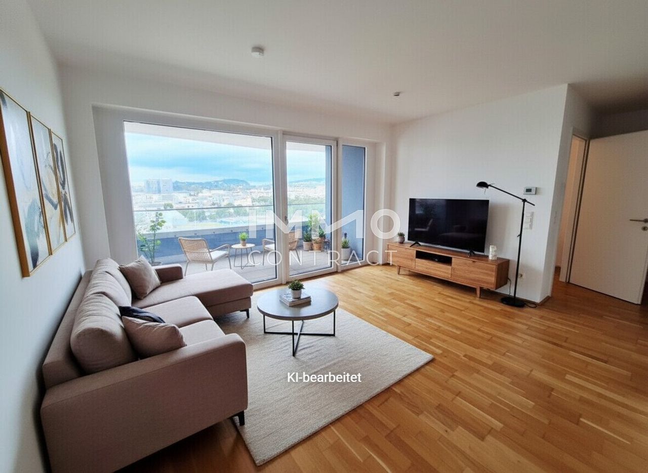 Willkommen in Ihrem neuen Zuhause in Linz! Diese neuwertige, 2019 erbaute Etagenwohnung bietet Ihnen modernes Wohnen auf ca. 75,47 m² Wohnfläche und insgesamt ca. 96,23 m² Nutzfläche. Die Immobilie befindet sich im 10. Geschoss der "LENAUTERRASSEN". Sie profitieren von einer ausgezeichneten Lage in der Stadt mit einzigartiger Aussicht. Raumaufteilung: Wohnküche (ablösefreie Einbauküche) , optisch getrennter Wohnbereich, zwei Schlafzimmer, elegantes Bad, WC und Abstellraum. Ein besonderes Highlight dieser Wohnung sind die großzügigen Freiflächen (Loggia + Balkon), die zum Entspannen im Freien und zum Genießen der frischen Luft einlädt. Ob ein gemütlicher Morgenkaffee oder ein Abend mit Freunden, diese Terrasse bietet Ihnen...