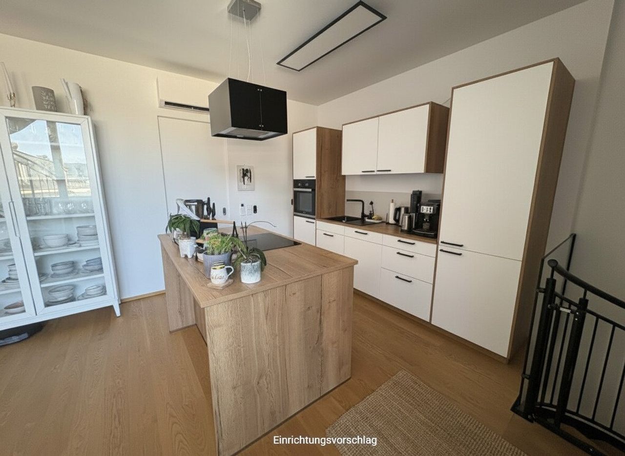 Die moderne Einbauküche ist nicht nur funktional, sondern auch ein echter Blickfang. Hier macht das Kochen gleich doppelt so viel Spaß. Ein Personenaufzug bringt Sie bequem in Ihre Etage, was vor allem im Alltag einen hohen Komfort bietet.