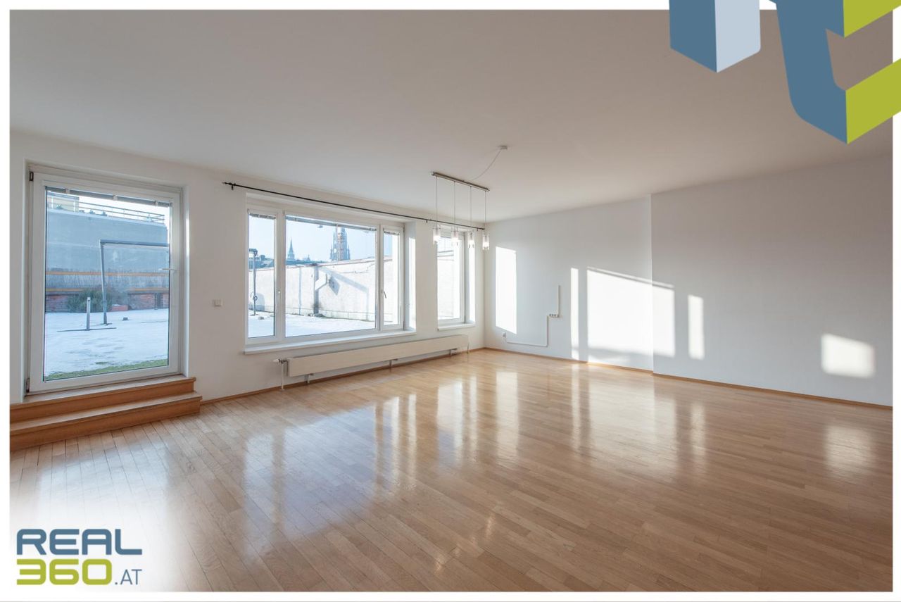 Zur Vermietung gelangt eine äußerst großzügige 146 m² Dachgeschosswohnung in absoluter Zentrumslage von Linz, Landstraße Höhe Vereinshaus. Die Wohnung befindet sich als einzige Einheit auf dieser Ebene und bietet dadurch ein Maß an Privatsphäre, das in dieser Lage eine absolute Seltenheit darstellt. Ein besonderes Highlight ist die rund 160 m² große, kaum einsehbare Dachterrasse, die einen einzigartigen Rückzugsort mitten in der Stadt schafft und den Wohnraum ideal nach außen erweitert.
