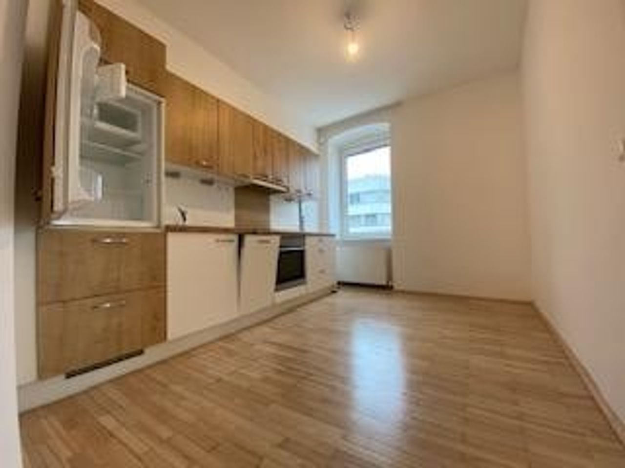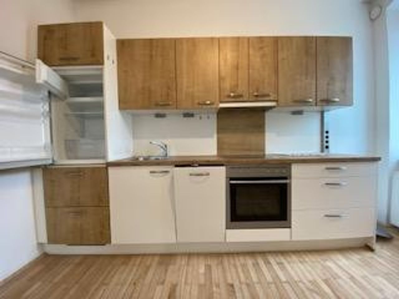 Die Wohnung besteht aus einem Vorraum, einem großen, hellen Wohn- Schlafzimmer, einem Esszimmer mit integrierter, voll ausgestatteter Küchenzeile (ablösefrei!) und einem Badezimmer (mit Dusche, Waschbecken, Waschmaschinenanschluss und Toilette).