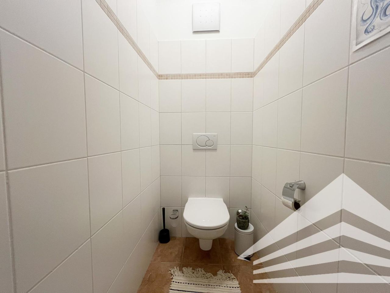 - Badezimmer mit Badewanne und Waschmaschinenanschluss