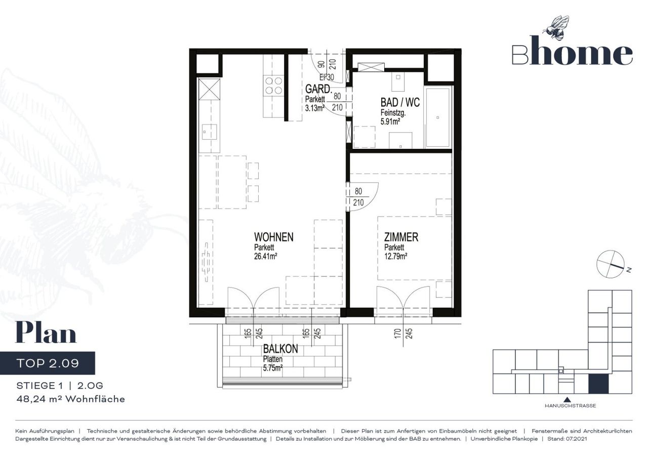 Diese lichtdurchflutete, ca. 48,24m² große 2-Zimmer-Wohnung befindet sich im 2. Obergeschoß und ist sowohl barrierefrei mittels Lift als auch über das Stiegenhaus erreichbar.