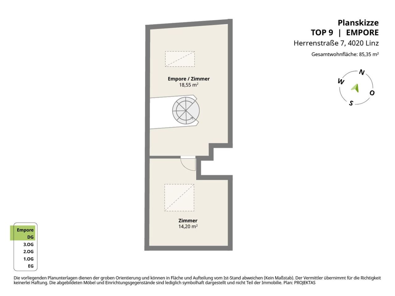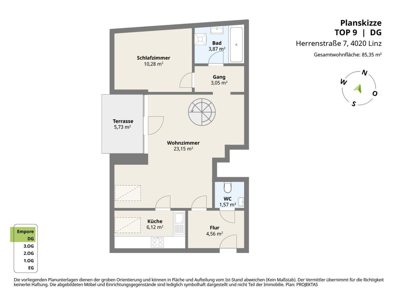 Raumaufteilung der Top 9 mit ca. 85 m² Wohnfläche: