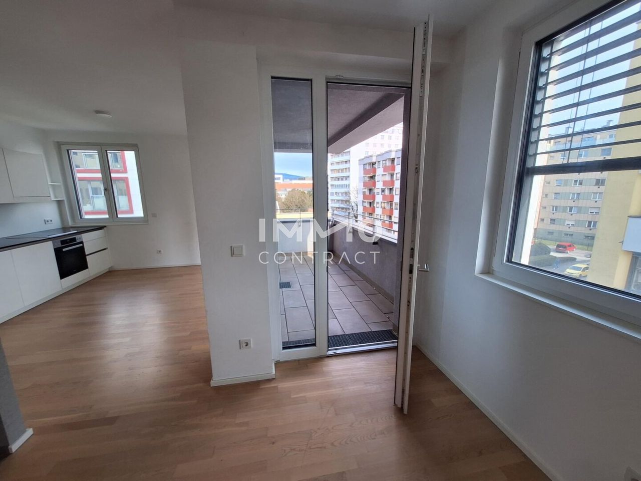 Willkommen in Ihrer neuen charmanten City-Wohnung im Herzen von Linz. Diese einladende 2 Zimmer-Wohnung verspricht Komfort und Stil auf ca. 44,58 m² Wohnfläche. Das Apartment befindet sich in einem eleganten Niedrigenergiehaus im Zentrum von Linz. Jede Menge Annehmlichkeiten befinden sich fast nebenan, wie etwa Nahversorger, Biomarkt, öffentliche Verkehrsmittel, die grüne Donaulände und natürlich das Linzer Stadtleben. Der hochwertige Parkettboden verleiht der Wohnung einen warmen und zeitlosen Charakter. Die elegante Einbauküche punktet mit hochwertigen Miele-Geräten und einer noblen Steinarbeitsplatte. Die elektrischen Raffstores runden das schicke Gesamtpaket ideal ab. Raumaufteilung Top 5.04: Vorraum, Wohn-Essbereich, Loggia, Schlafzimmer, Bad/WC + Kellerabteil. * Heizung, Strom...