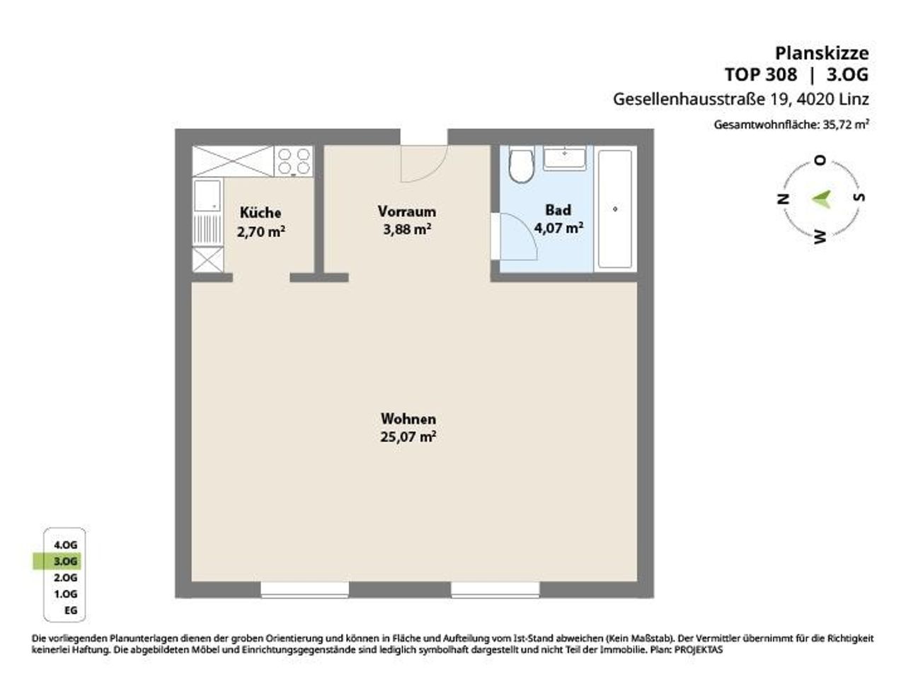 Im 3. OG (mit Lift) des Hauses Gesellenhausstraße 19 in Linz befindet sich diese helle 1 Zimmerwohnung. Nur wenige Gehminuten von der Landstraße entfernt, genießt man alle Vorzüge der Linzer Innenstadt.