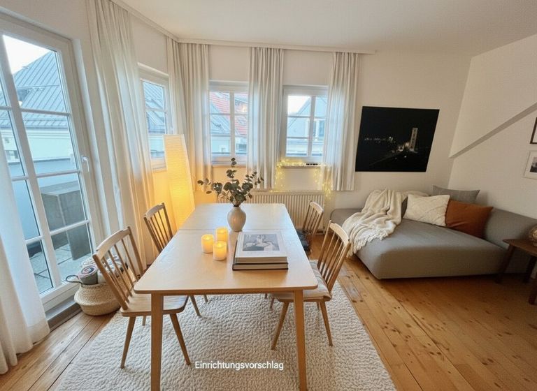 Highlights: - Zentrale Lage - 3-Zimmer Maisonettewohnung - 2 Schlafzimmer - Bad mit Dusche - Terrasse...