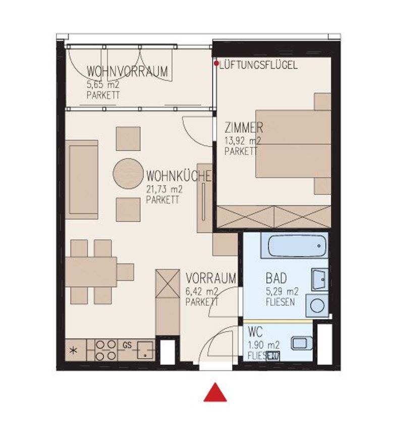 Diese ca. 54,91m² große Wohnung überzeugt durch eine sehr gute Raumaufteilung und helle, freundliche Räume. Über den offenen Eingangsbereich gelangt man direkt in den lichtdurchfluteten Wohn-/Essbereich, der den zentralen Wohnraum der Wohnung bildet. Vom Wohnbereich aus ist der ca. 5,65m² große Wohnvorraum (Wintergarten) erreichbar. Dieser stellt eine attraktive Erweiterung des Wohnraums dar und eignet sich ideal als Homeoffice, zusätzlicher Aufenthaltsbereich oder persönlicher Rückzugsort. Das Schlafzimmer ist gemütlich gestaltet und verfügt ebenso über einen Zugang zum Wohnvorraum. Das Badezimmer ist mit einer Badewanne, einem Waschmaschinenanschluss sowie einem Waschbecken ausgestattet....