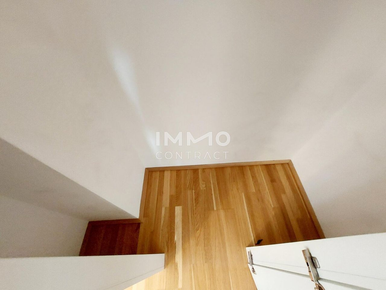 Diese Maisonette liegt im historischen Palais Zollamt, zwischen Donaulände und Pfarrplatz. In der ersten Ebene befindet sich der Vorraum mit einem WC und das Wohn-Esszimmer inkl. Küche. In der oberen Ebene sind die beiden Schlafzimmer, eine Diele und das Badezimmer mit einem weiteren WC platziert. Fahrradabstellplätze befinden sich im Innenhof und ein Kellerabteil gehört fix zur Wohnung. Heizung und Warmwasseraufbereitung erfolgen mittels Fernwärme. Raumaufteilung: Vorraum, WC, Wohn-Esszimmer mit Küche, Abstellraum, 2 Schlafzimmer, Bad/WC, *** Die angegebenen Heizkosten (in Gesamtbelastung enthalten) belaufen sich auf die letzte Abrechnung und sind abhängig von indiv. Verbrauch. Parken: Tiefgarage im Haus, Miete brutto EUR 129,00...