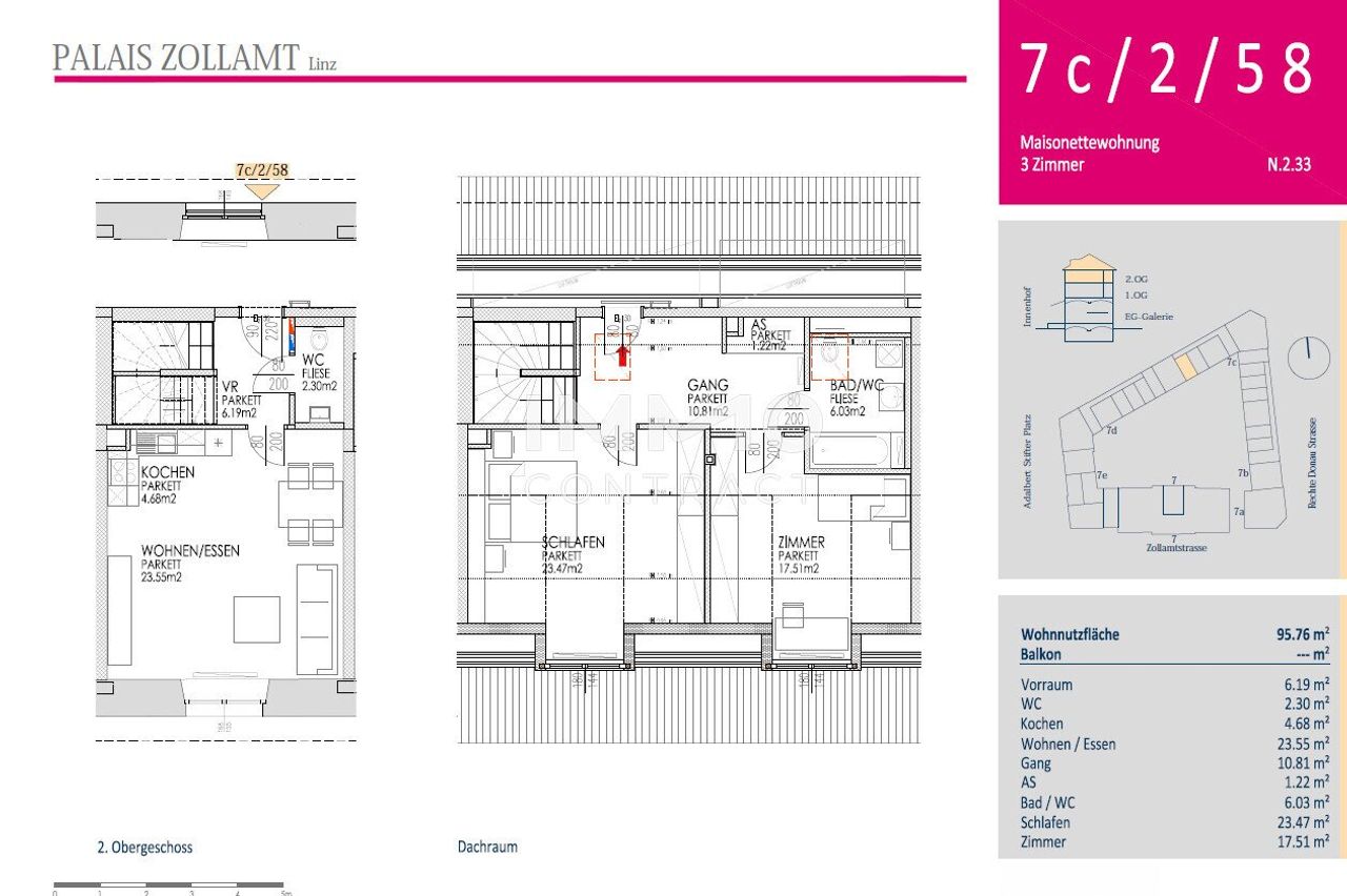 Diese Maisonette liegt im historischen Palais Zollamt, zwischen Donaulände und Pfarrplatz.