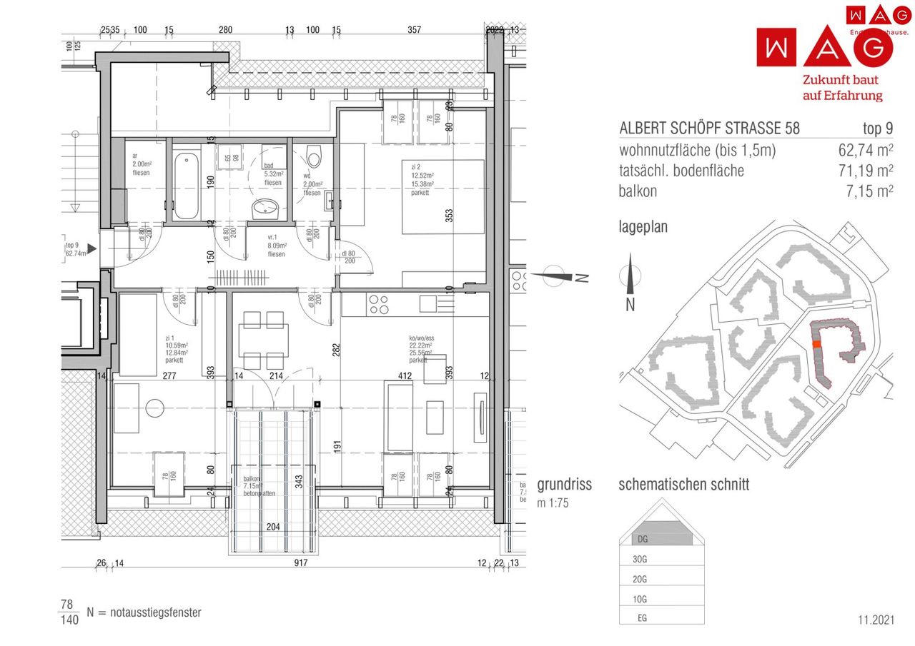 Die Wohnfläche beträgt ca. 71,19 m².