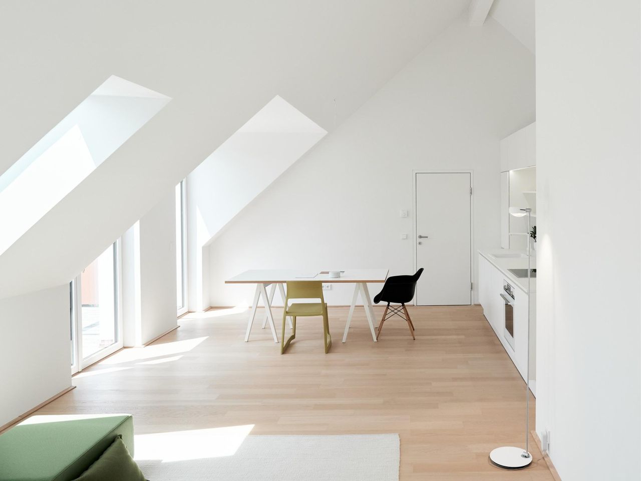 Top 9 Erstbezug in einem Wohnhaus mit 6 Wohneinheiten eund einem Gemeinschaftsgarten. Fußläufig sind auch die öffentlichen Verkehrsmittel erreichbar. Diese Immobilie - wurde vom Architekten geplant - hat eine westseitige Ausrichtung - ist 3- seitige Belichtung - ist bezugsfertig - ein Nachbar pro Stockwerk - hat niedrige Betriebskosten - ist ein Niedrigenergiehaus - hat eine Fußbodenheizung, Wärmemengenzähler, und ist an die Fernwärme angeschlossen. - hat ein großes Vorzimmer - hat einen heller offenen Grundriss mit einem ca. 40 m2 großen Wohnesszimmer mit offener EWE Küche weiß inkl. Siemensgeräten. - hoher Raum bis über 3 m - hat eine, dem Wohn...