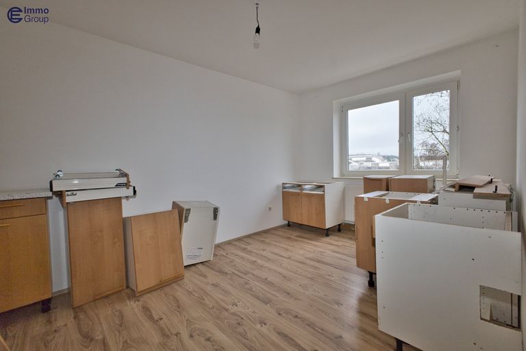 Das Wohnzimmer bildet den zentralen Wohnbereich und lädt zum Entspannen ein. Das Schlafzimmer ist ruhig gelegen und bietet ausreichend Platz für ein Bett und Stauraum. Die Küche ist praktisch geschnitten und ermöglicht eine angenehme Nutzung im Alltag.