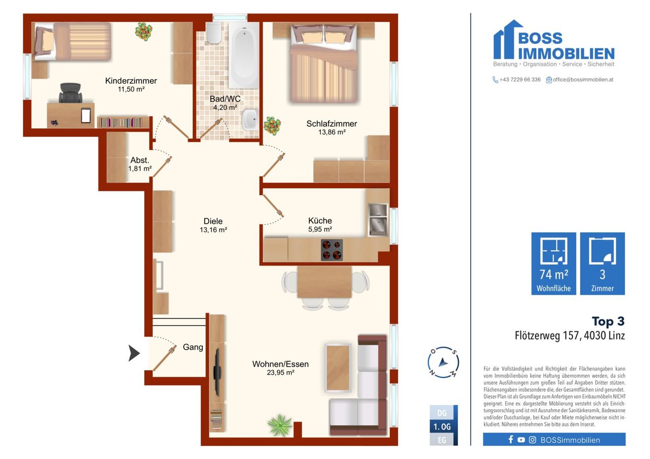 > Linz | Wohnung | Mieten < Diese moderne und helle 3-Zimmer-Wohnung im 1. Obergeschoss ohne Lift überzeugt mit durchdachtem Grundriss und einem angenehmen Wohngefühl. Zwei geräumige Schlafzimmer bieten ausreichend Platz für Rückzug und Privatsphäre – perfekt für Familien oder eine WG.