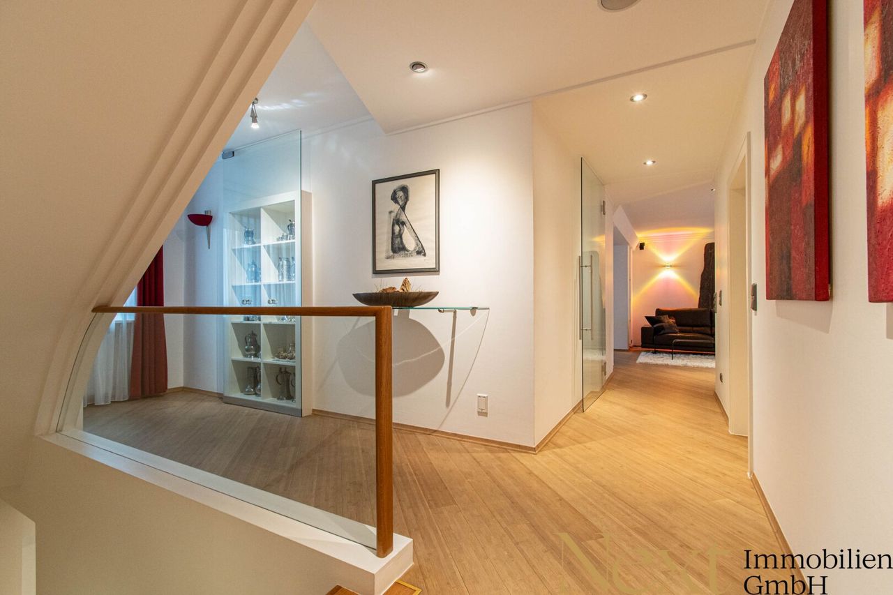 Zur Vermietung gelangt ein äußerst großzügiges und hochwertig ausgestattetes Einfamilienhaus in urfahraner Bestlage. Das Haus erstreckt sich auf insgesamt 3 Geschosse (exkl. teilunterkellertem Bereich) und bietet eine Wohnfläche von ca. 351,90m² (inklusive Garage und Keller/Technikraum ca. 407,9m²) auf einem ca. 698m² großen Grundstück.